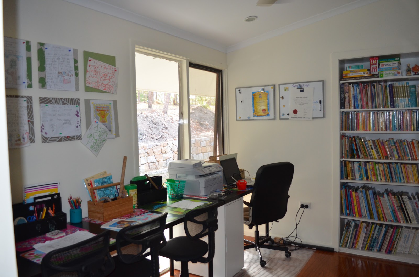 As our property is named Nobel Acres it stands to reason that our school is called 'Nobel College'. Hehehehehe.... what chance do my kids have to do anything but pursue a Nobel Prize?!? The school room is perfect. The fact that the house has a room who's purpose seems to be specifically designed to be a school room is perfect. I have put some pictures in below of how we have it set up. I love nothing better than to sit down and listen to my children read or teach them. It relaxes me and I find it more enjoyable to do than almost anything else.